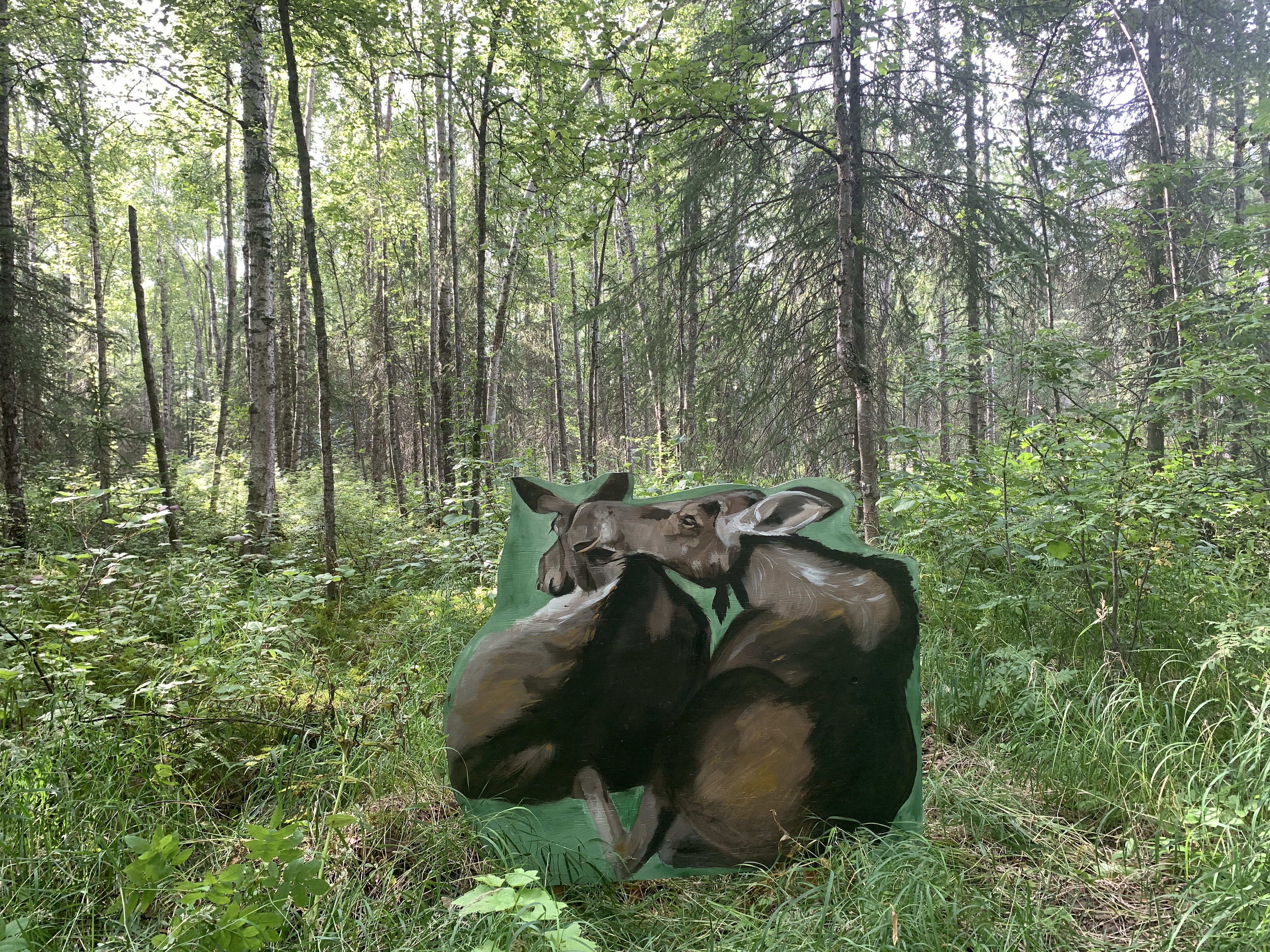 Garden Moose painting instllation on view at the Alaska Botanical Gardens, Anchorage Alaska, August 2023 - ongoing. In collaboration with the Alaska Botanical Gardens and the Alaska Wildife Conservation Center